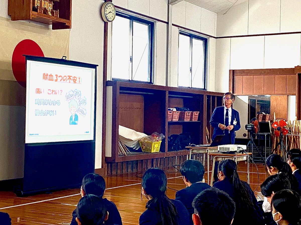 令和7年1月24日(金)輸血バスが御船高校に来ました。満18歳を迎えた3年生と先生方が輸血に協力してくださいました。