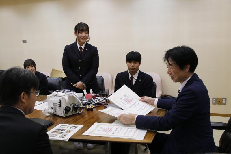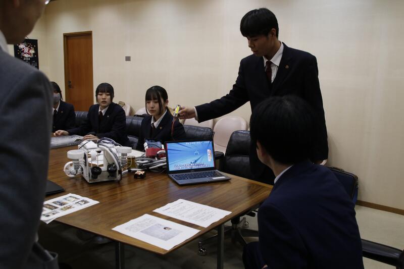 令和7年1月28日(火)御船町議会広報誌「あおぞら21」の取材で御船町議会議員2名の方が来校されました。御船町の良いところや、御船町への要望など、5名の代表の生徒との座談会がありました。議会議員からは、御船高校が活躍している点や頑張っていることを褒めてくださり、御船町と御船高校がともに発展していくことができるよう町や県に働きかけていきます、とのお言葉をいただきました。