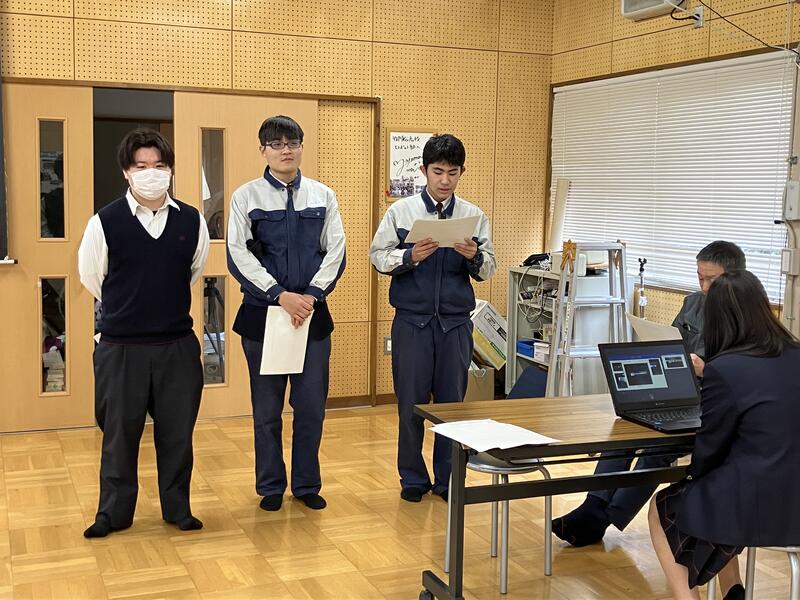 今日は電子機械科3年生にとって、最後の課題研究となりました。課題研究とは、班ごとにテーマを決めて、1年間かけて研究に取り組む授業です。