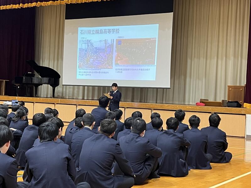 2月13日(火)4限目に、「合格体験談」の発表会がありました。普通科進学コース、普通科総合コース、普通科芸術コース、電子機械科の4会場に別れ、3年生が合格体験を1,2年生に向けて発表しました。進学や就職に向けての貴重な話やアドバイスを聞くことができました。
