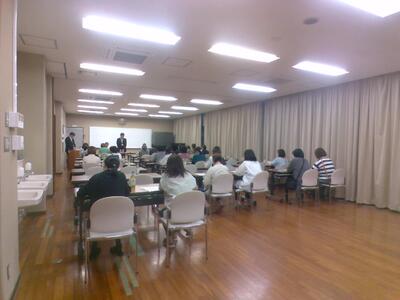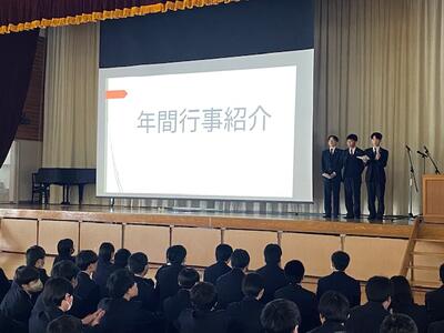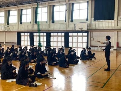 本日7限目相当時に、1年生とその保護者を対象として、本校体育館にて標記の会が開催されました。