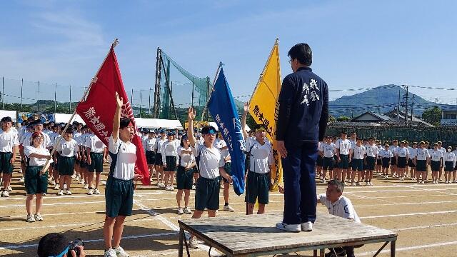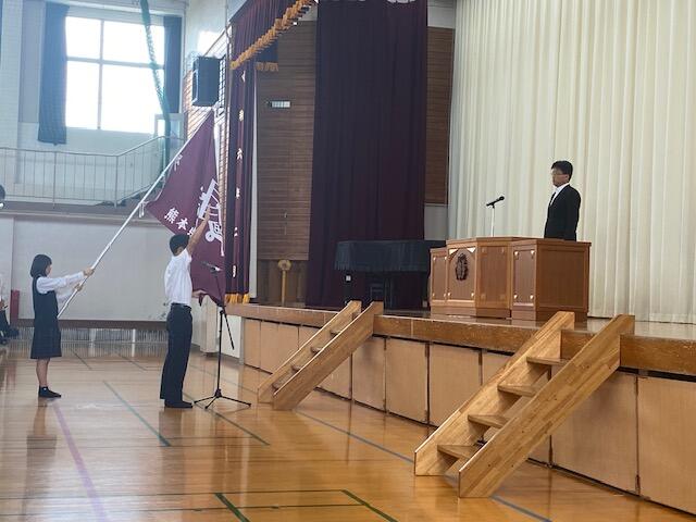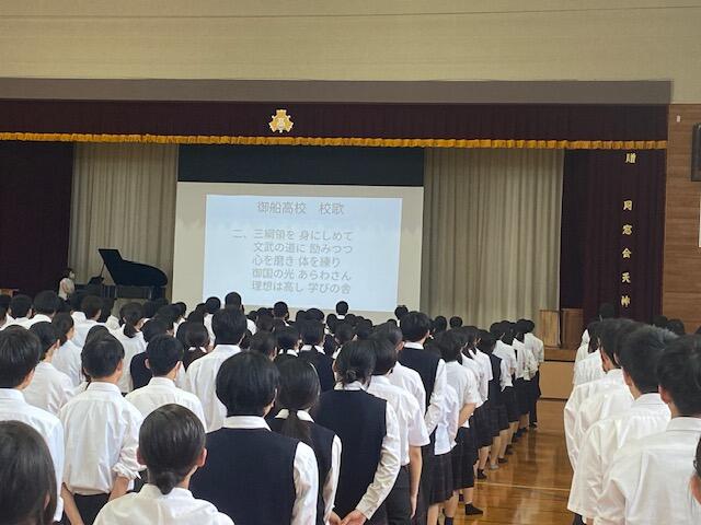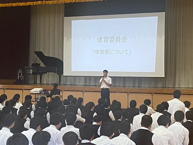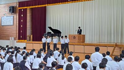 6月11日(火)本日は全校朝礼が体育館でありました。各委員会からの連絡のあと全校生徒で校歌を歌いました。