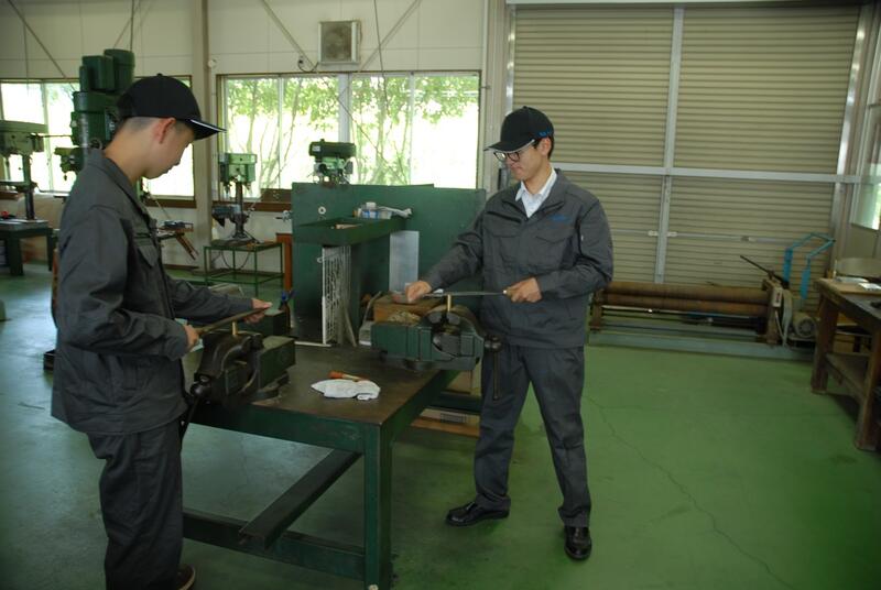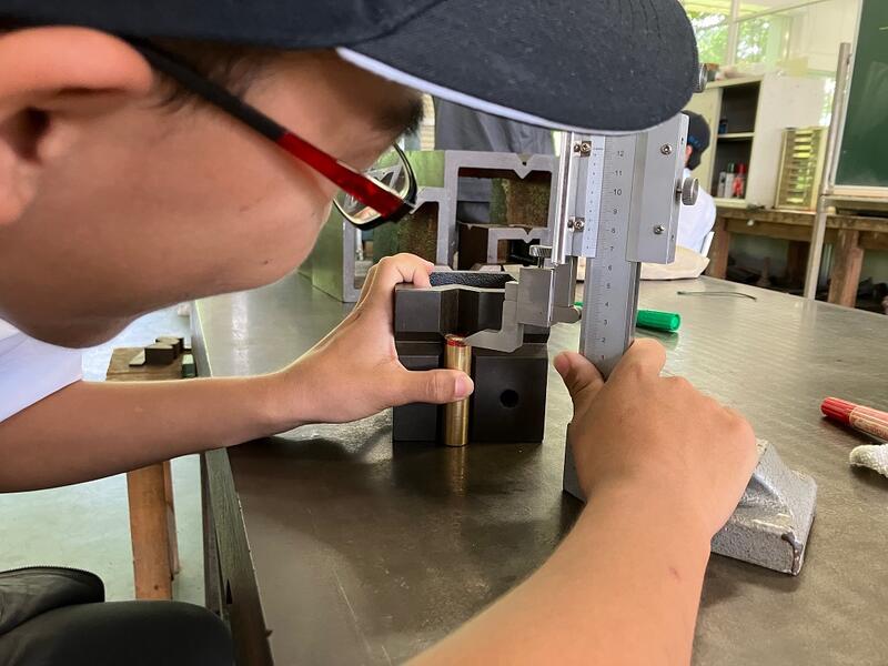 以前から取り入れている実習です。機械加工の基礎である「やすり」で切削加工を行います。