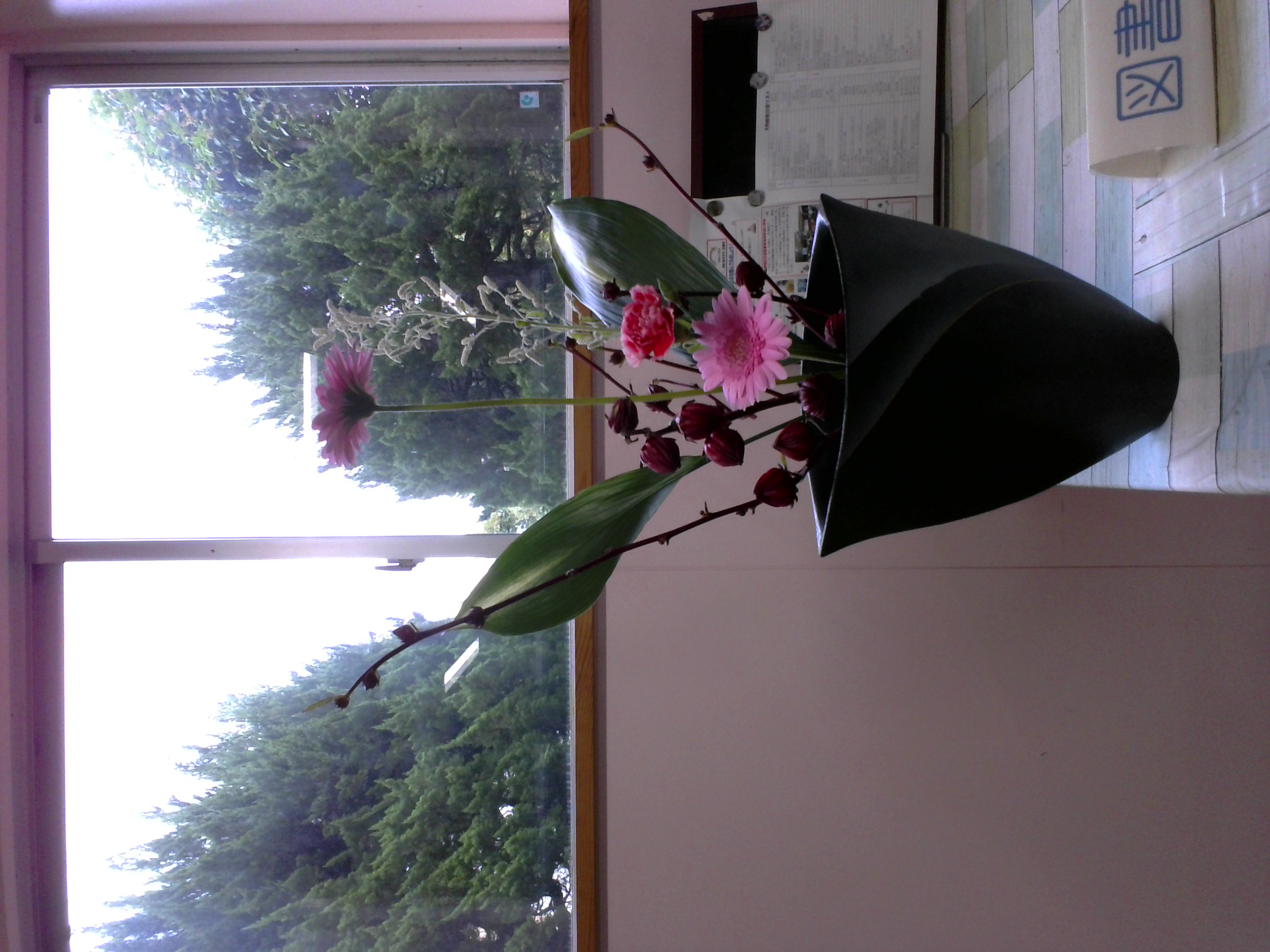 本校では華道部のお稽古のあと先生が生けた作品を事務室の前に飾っています。