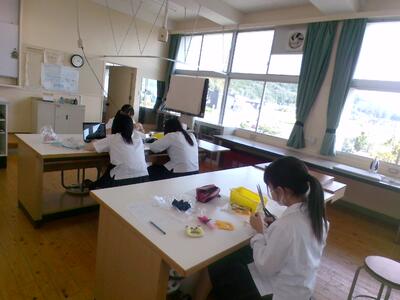 3年生電子機械科生徒による弁当袋製作