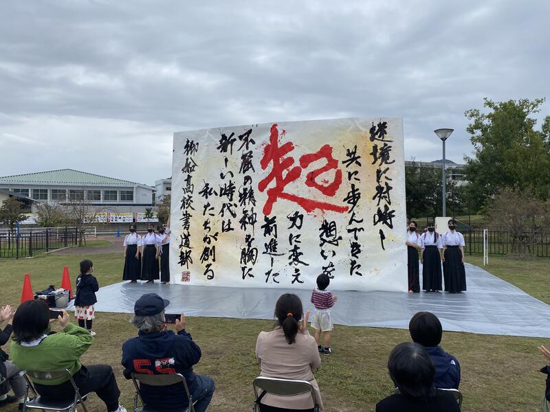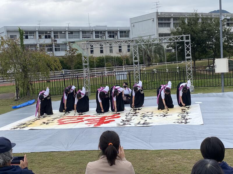 10/9(日)に御船町ふれあい広場で開催されるイベントに向けて書道パフォーマンスの練習をしています!