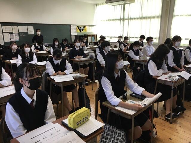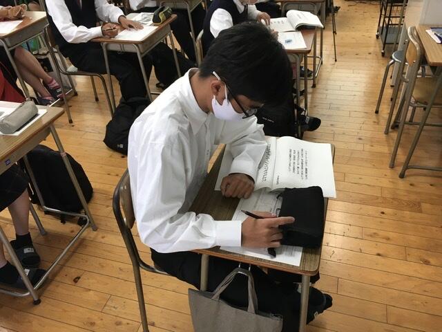中間考査直前の3年生の様子です。進学の入試と学校の中間考査、両方頑張っています!