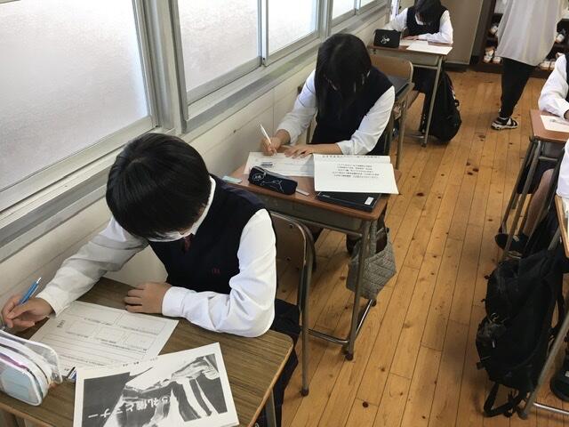 2年生は10月のインターンシップに向けて、自己紹介カードを書いたり、通勤方法を調べたりしています笑う