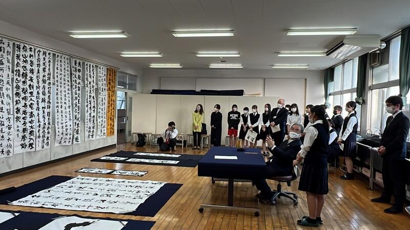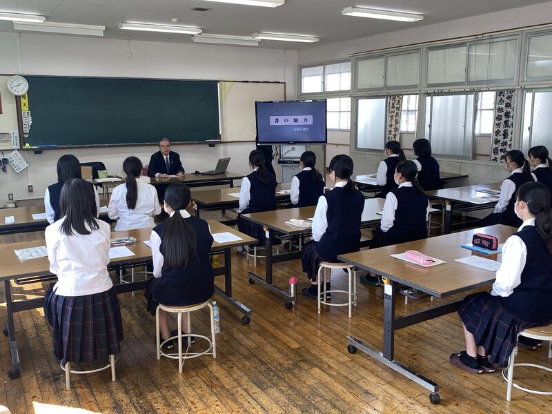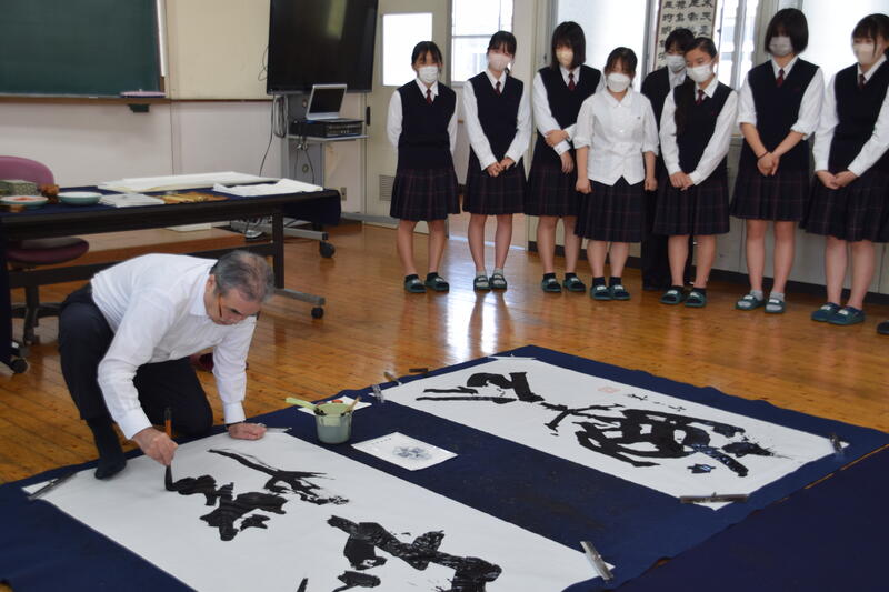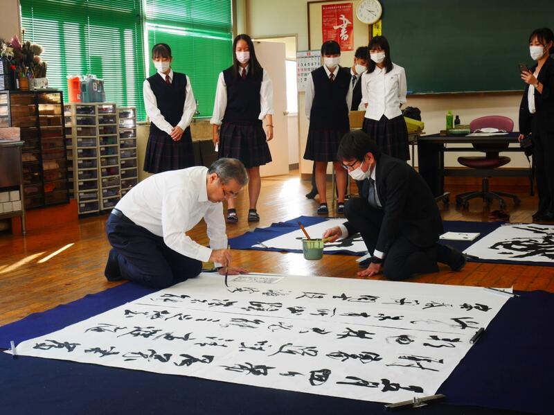 コロナ禍で中止になっていた作品制作講習会が3年ぶりに開催され、御船高校書道部も参加しています!