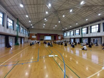 朝の体育館です。今は静かですが、放課後にはシャトルを打つ音、ボールの音、笑顔や笑い声で溢れます。テスト後には各部活動、大会も予定されています。みんなで頑張りましょう❗