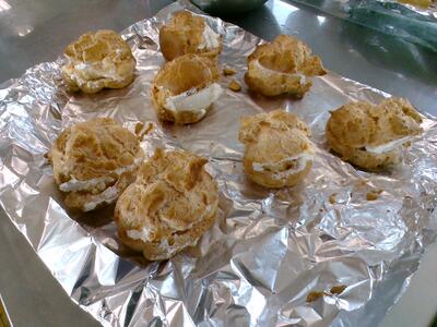 本日のフードデザインの授業では、シュークリームの調理を行いました。3時間目にシューを焼き、4時間目にカスタードクリームを作りました。生徒1人ずつで全行程を行うので、とても時間がかかりましたが、全員のシューが上手に膨らみ、大変美味しくできました。