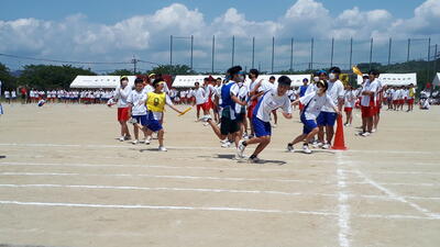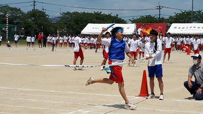 体育祭最後の競技、「天神リレー」がありました。各団の団長含む代表31名が、団の名誉をかけて競いました。