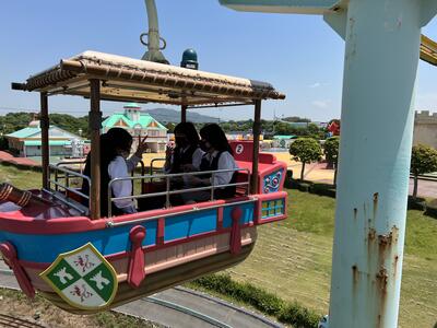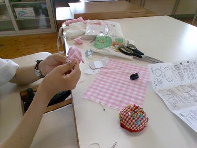現在、被服・食物部の被服部員は1年生2名です。今日は、テディベア製作と、ロングプリーツスカート製作を行いました。隣の恐竜公園からは、ちびっこ達の歓声が聞こえています。