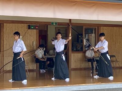 弓道男子団体の一立目と個人予選がありました。1年生2人が試合デビューを果たしました。