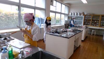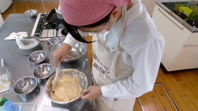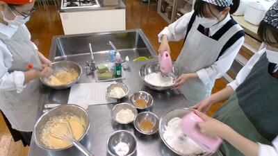 食物部では、万全の感染症対策をしながら活動しています。今日はマドレーヌ作りをしました。