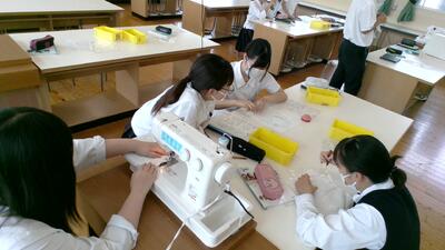 3年C組(芸術コース)では、「子どもの発達と保育」の授業を選択できます。今日の授業では、乳児用のスタイ(よだれかけ)制作をしています。
