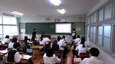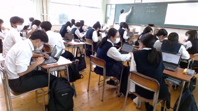 2年生の総合的な探究の時間では、「興味のある仕事」について調べています。今日はまとめの時間で、生徒たちはchromebookでまとめを作成しています。