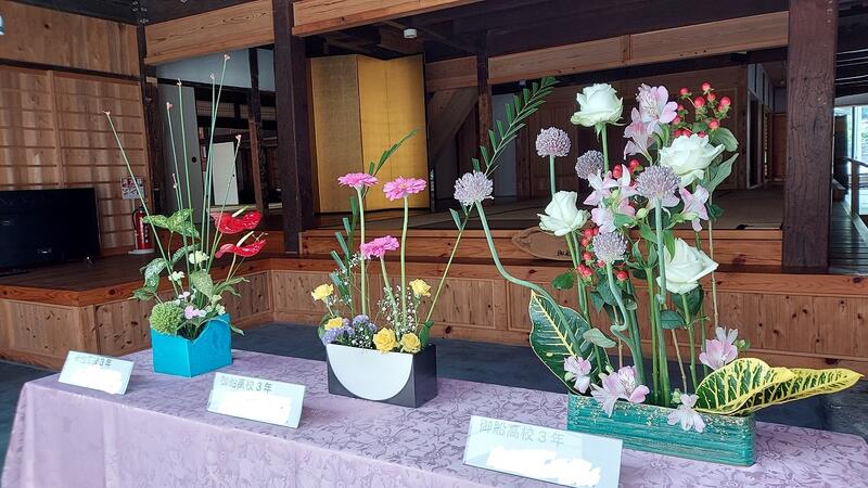 6月初旬に御船町街なかギャラリーで開催された華道部の「花展」。