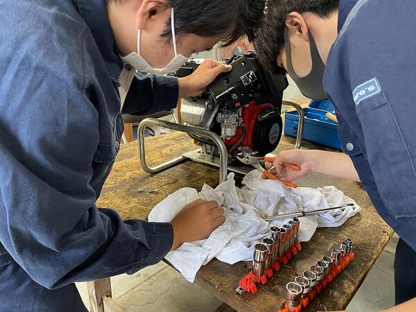 空調の無い実習工場で、3年生は課題研究を進めています。