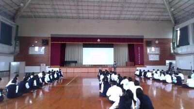 中間考査1週間前。2学年の学年集会で、学年主任からの激励がありました。