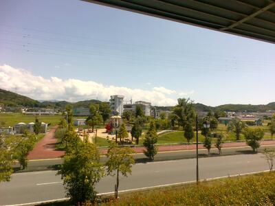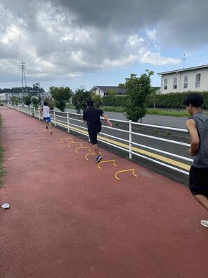 毎日、暑い日々が続いていますが、陸上部は学校横のふれあい広場(通称、恐竜公園)で、秋の大会に向けて練習に励んでいます。