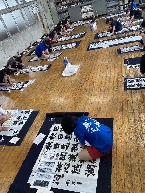 書道部は現在、9月に行われる県揮毫大会へ向け日々練習に励んでいます。
