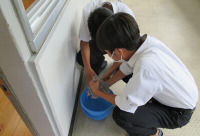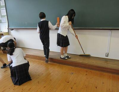 1、2年生の夏の進学課外は本日までありました。こちらは2年生の教室の掃除の様子です。キレイにして、気持ちよく勉強ができますね。