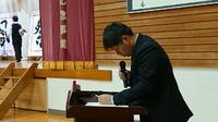 最後に全校生徒で亡き先輩に黙とうを捧げました。