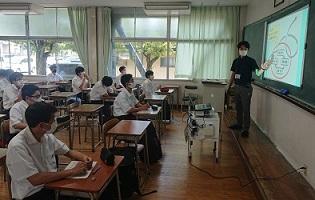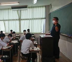 9月25日(金)、1年生の「総合的な探究の時間」では、外部講師を招き「御船町の将来像」について講演会を実施しました。本校のコミュニティスクール委員の方にお世話いただき、御船町商工観光課・企画財政課や御船町商工会から、課長・係長、副会長など御船町の町づくりに最前線で携わっておられる方々を講師として招き、クラスごとに御講演いただきました。「交流人口拡大の取り組み」「移住定住の取り組み」「人口減少社会の中での町づくり」「企業誘致の可能性は無限大」「事業の拡大」など、それぞれの専門業務や経営者の立場から、御船町の良さを掘り起こし、発展を図るアイデアや取り組みを分かりやすくお話しいただきました。生徒たちも、自分たちなりに調べ、考えてきたことに新たな視点や示唆を得て、関心を持って講演を聞いていました。これからの研究がさらに深まりそうです。地域の方々にご協力いただいて活動が充実しています。感謝申し上げます。