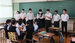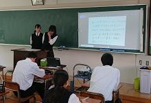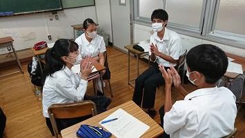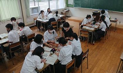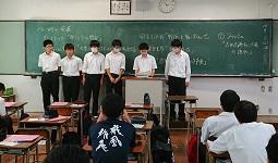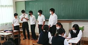 10月2日(金)、1年生の「総合的な探究の時間」は「御船町研究」の中間発表会をクラスごとに行いました。班ごとに調べた御船町の現状、課題に対して解決策のアイデアや今後さらに調べて深めたいことを発表しました。子育て、防災、土地利用、環境保全、交通、観光客誘致、商業の活性化など、多岐にわたる分野についてハード、ソフトの両面から若者らしい斬新なアイデアが出されていました。内容は、最終発表までお楽しみに。発表に対して質問したり、相互評価をしたり、生徒たちは意欲的に取り組んでいました。活動をさらに充実させて、地域に学び参画する関心・意欲・態度を身に付けてほしいと思います。