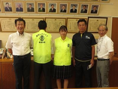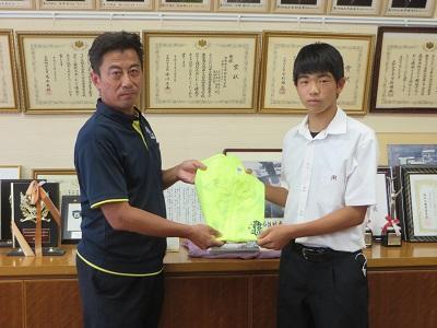 9月15日(火)に御船ライオンズクラブの方々がご来校され、ボランティア活動で用いるビブスを寄贈いただきました。早速、本校の生徒会長・副会長が試着しました。ボランティア活動中に視認性の向上や本校生の識別だけでなく、活動に参加する生徒たちどうしの一体感も生まれるのではないかと期待しております。学校のPRにもなりますので、今後は有効活用していきたいと思います。心より感謝申し上げます。