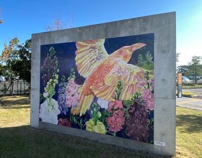 令和5年10月29日(日)第33回みなと八代フェスティバル2023が開催されました。くまモンポート八代は、八代港を九州中央の大型クルーズ客船受入の拠点にするために、熊本県で整備を進めた施設です。みなとフェスティバルのオープニングセレモニーの会場横に本校生徒が描いた壁画か飾られていました。くまモンポートにお越しの際はぜひご覧になってください。