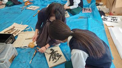 今日の飾り付け、本校からは書道部の一年生2人が参加してくれました!