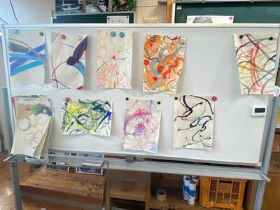 11月14日(火)1・2年生のドローイングの授業を行いました。「ドローイング」アイデアやイメージのスケッチです。一般には単色の線で描くことが多いです。今日は「お題」に沿って描いたり、時間も題材も自由に描く活動となりました。