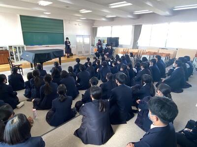 2月13日(火)本校音楽室で芸術コースの先輩方の進路体験談を聞く会を開催しました。