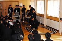 御船小学校3年生の皆さんが2月19日(水)午後に来校されました。総合的な学習の時間の「御船町を知ろう」というテーマの学習活動の一環です。町内にある消防署、警察署等と共に高等学校も訪問先に選ばれたのです。中野校長先生自ら引率され、3年生の2クラス60人の元気な児童の皆さを迎えることができました。