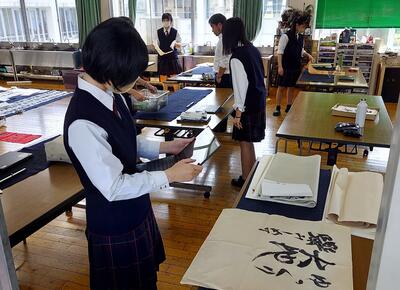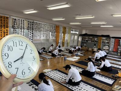 9月9日土曜日に開催される県高校揮毫大会へ向け書道部一同頑張っています。