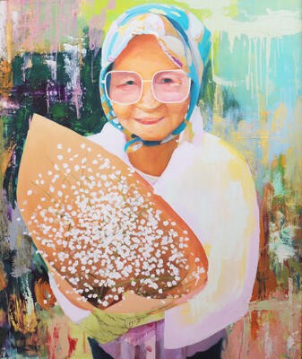 令和5年10月11日(水)くまもと「描く力」チャレンジ部門で、芸術コース美術3年生丸尾さんが特選2席に選ばれました。丸尾さんは花束を持ったおばあちゃんを明るい色彩で描きました。おばあちゃんの優しい表情と、爽やかで豊かな雰囲気を軽やかなタッチで表現しており、お互いの愛情が伝わってくる作品に仕上がっています。また他にも、優秀賞に伊藤さん、宮崎さん、江口さん、入選に廣さん、立野さんが選ばれました。みなさん、おめでとうございます。作品は11月28日~12月3日まで熊本県立美術館本館に飾られます。