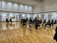 12月12日(土)、熊本マリスト学園中学・高等学校において、7県の高校書道の専門委員長の先生方をお迎えしました。感染者が多く出ており、警戒レベルも高いはずの福岡県や沖縄県からも来ていただきました。審査に先立ち、主催県の代表として私から「生徒の皆さんを集めての大会が開催できず、誠に申し訳ありません。」とお詫びを申し上げました。それに対して、出席の皆さん方から「この状況では仕方がなかった」、「このような形で揮毫大会を開いていただき感謝します」等の温かい言葉を頂きました。