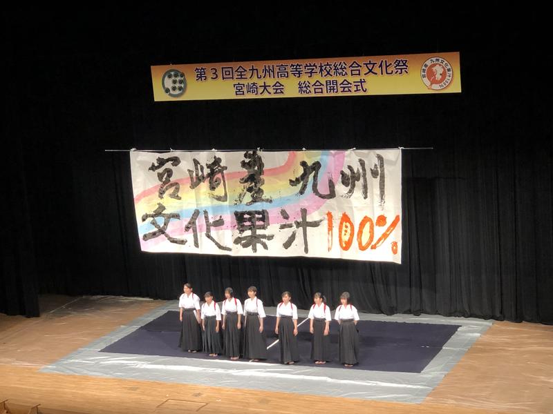 1日目は総合開会式で書道パフォーマンスやダンス、伝統芸能、吹奏楽など様々なアトラクションが用意されていて、宮崎の高校生の熱気を感じることができました。