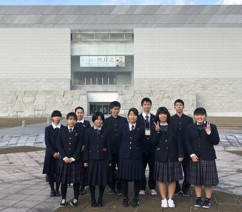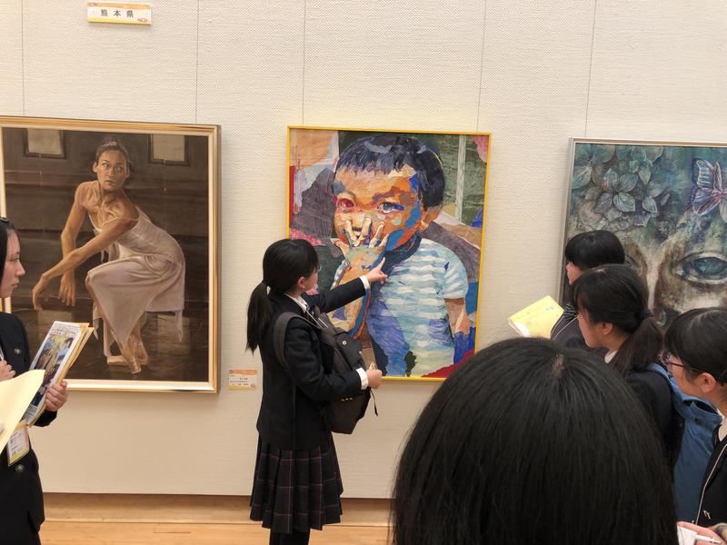 熊本県立美術館で表彰式が行われ、熊日新鋭賞・3年 西村歩美さん、特選・3年 友田穂乃香さん、2年 坂口理愛さんが出席しました。