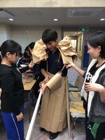 2日目はグループ制作が行われました。課題はキャラクター制作でグループごとにテーマが決められており、原田さんのグループはテーマ「山」でした。最後はキャラクターを段ボールや紙で着ぐるみのように仕上げ、ランウェイを歩きプレゼンをするという企画でした。