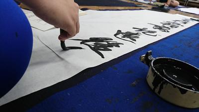 大会では120分の制限時間内に書作品を制作し、その完成度を競います。先生からの指導を受けたり、手本を見たりすることは出来ず、生徒の力だけで制作します。