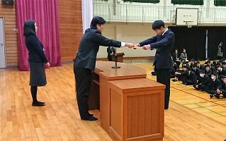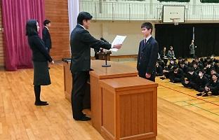 始業式に先立って表彰式が行われ、コーラス部、吹奏楽部が各コンテストの表彰を受けました。コーラス部は来年度行われる全国高等学校総合文化祭に県代表として出場します。
