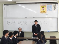 明日・明後日のセンター試験を前に、激励会が行われました。校長先生・教頭先生はじめ、多くの先生方から温かいメッセージが贈られ、受験予定の生徒たちは、うなずきながら言葉に耳を傾けていました。学年主任の高森先生からは、心のこもった手作りのバッグに入ったお菓子もプレゼントされました。高校で学んだことの総仕上げであるセンター試験。適度な緊張感の中、ベストコンディションで臨み、自分の持てる力を発揮してくれることを願っています! 頑張れ! 船高受験生!