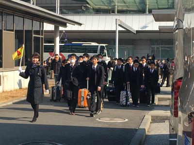 本日午前6時40分、小雨の降る中、176名の生徒が長野・東京方面への修学旅行に出発しました。出発式では、校長先生より、「飛行機に乗ること、スキーをすること、大都会である東京へ行くこと、初めての人もいるかと思います。楽しんできてください。」とご挨拶がありました。今日は東京を経由して長野のへ。午後3時からさっそくスキー講習が始まります。現地の生徒の様子は、ホームページ「船高トピックス」をとおしてお届けします。