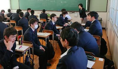1月29日(火)に1年3・4組が、1月30日(水)に1年1・2組が「認知症サポーター養成講座」を受講しました。御船町地域包括センターやキャラバンメイトの先生から認知症について講話をしていただいた後、「買い物の帰り道が分からなくなって困っているおばあちゃん」の劇を見て、「おばあちゃん本人」、「おばあちゃんの家族」の気持ちを考えるグループワークをしました。また、「高校生として何ができるか」を真剣に話し合いました。