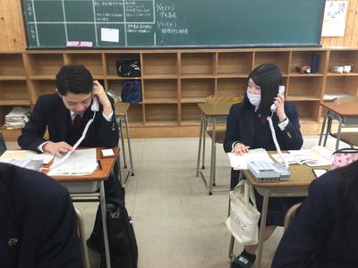 このセミナーは熊本県雇用環境整備協会様の高校生向け支援事業の一つで、外部講師の方に来ていただき、御指導していただきました。内容は挨拶、名刺交換、電話対応など社会人として基本的なマナーの指導で、生徒達は真剣に取り組んでいました。