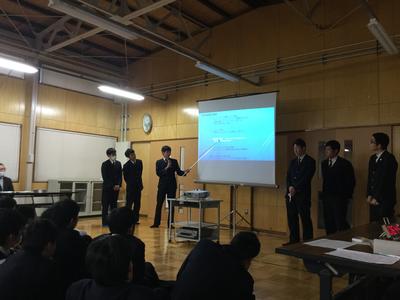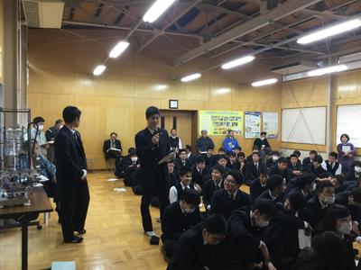 一人一人が課題を持って取り組み、その成果を1、2年生の前で堂々と伝え、3年間の成長を見ることが出来ました。これからは、就職・進学とそれぞれが新しい道に向かって準備を進めていきます。これまで電子機械科で学んだことを就職・進学先でいかし、頑張ってくれることを期待できる発表会でした。