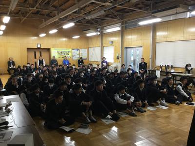1月8日(火)、第3学期始業式を行いました。比較的穏やかな冬休みを終え、皆元気に登校してきました。校長訓話では、夢を持つことの大切さを説かれ、夢の実現のために短期、中期、そして最終目標と段階を踏んで目標を掲げ、努力していくよう激励されました。最後は、今年最初の校歌斉唱で式を閉じました。